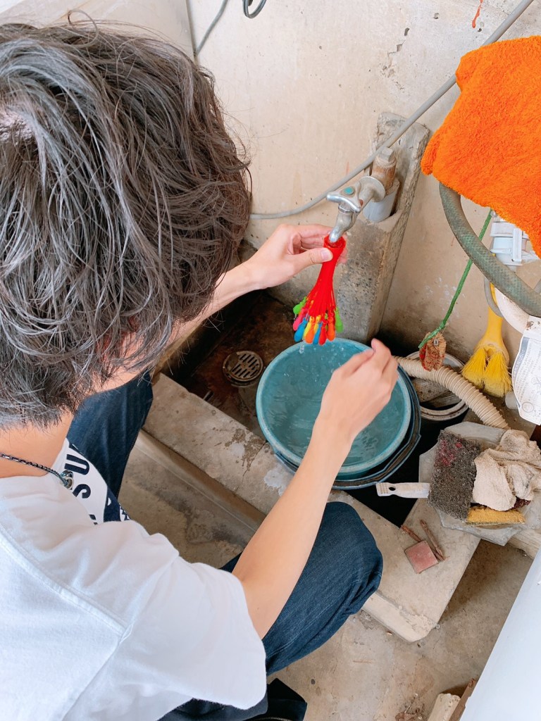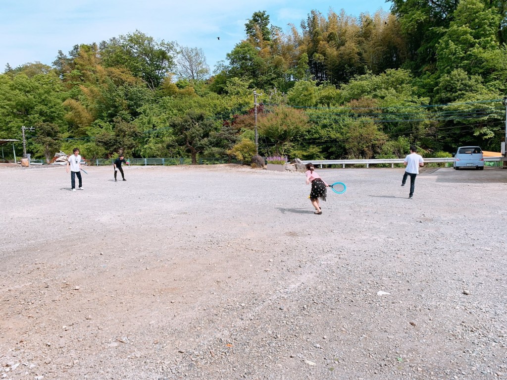 お腹が膨れてきたら持参した水風船やバドミントンで遊びました♩