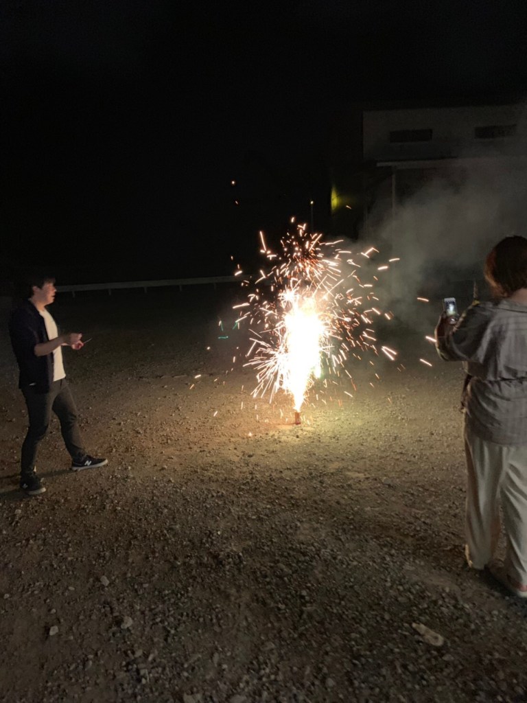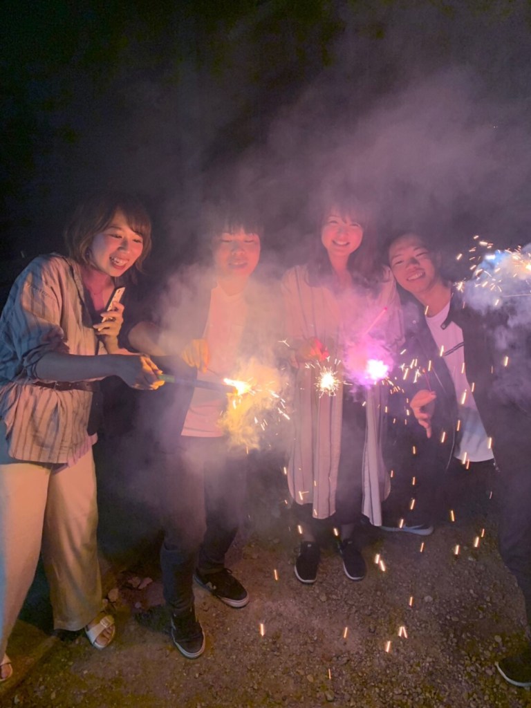 日が暮れた後は花火も楽しみました!